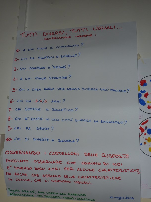 Tempere, pennarelli, colori, cartelloni, corse, saltelli e voci per conoscerci meglio, vedere quante diversità abbiamo (e quante ancora da scoprire).